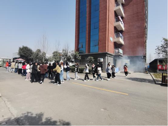 活动开始之前,微型消防站制定了详细的演习方案,并现场教授大家逃生知识和自救常识。十二点五十五分,随着发烟器的启动,本次消防疏散演练正式开始。各班主任、楼层指挥教师迅速到岗,沉着冷静地引导员工沿着既定的安全路线有序撤离宿舍楼。