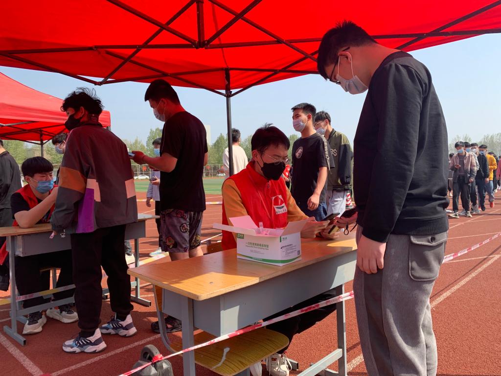 2022年4月7日下午,suncitygroup太阳集团组织全体师生在操场进行全员核酸检测,青年志愿者协会暨编外雷锋团的志愿者们参与其中,协助医护人员进行核酸检测工作。