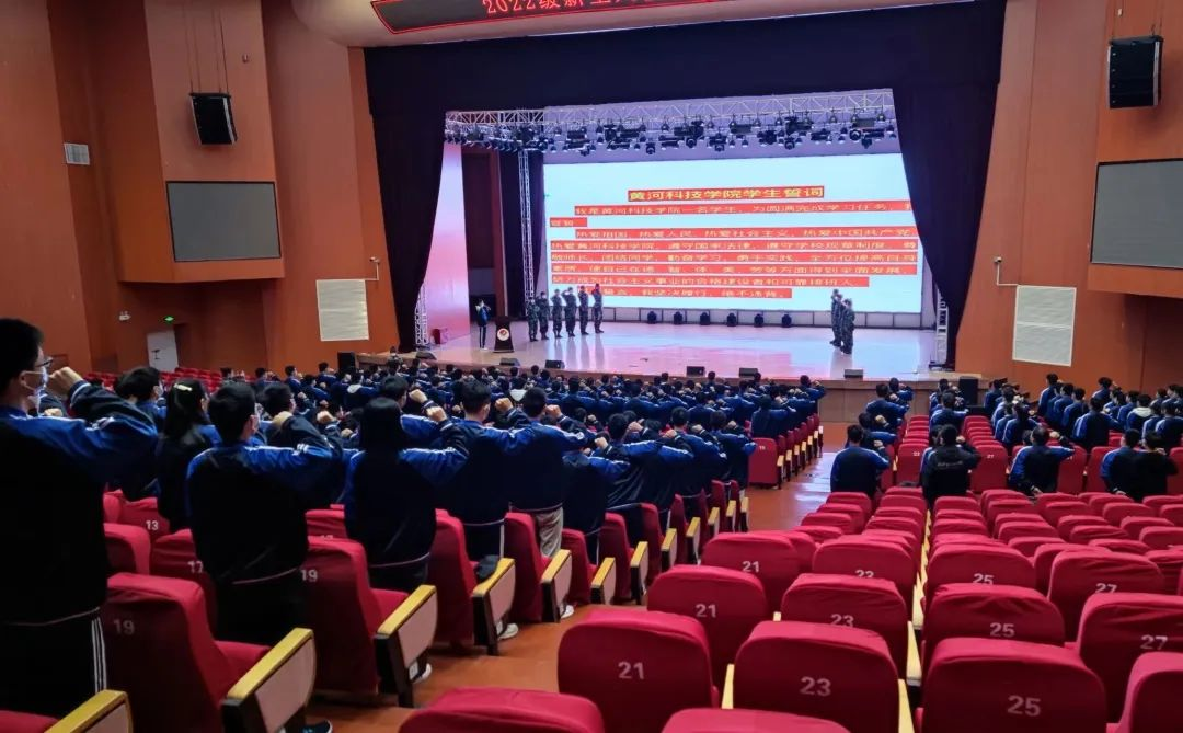 活动中,青年突击队队员代表带领2022级新生庄严宣誓,辅导员老师就如何做一名优秀的黄科大人、如何做一名优秀的老员工进行了讲评。