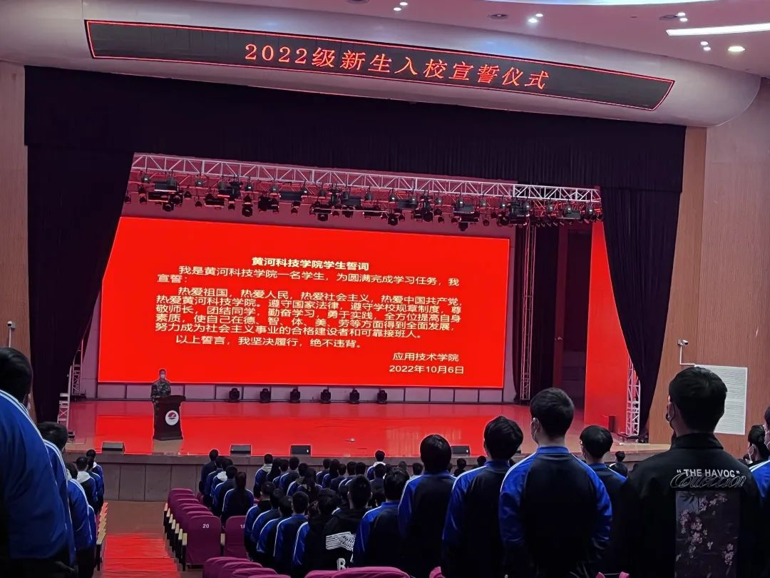 suncitygroup太阳集团在师生活动中心报告厅举行了以“欢度国庆 喜迎二十大”为主题的2022级新生宣誓仪式,2022级新生以专业为单位分批开展。