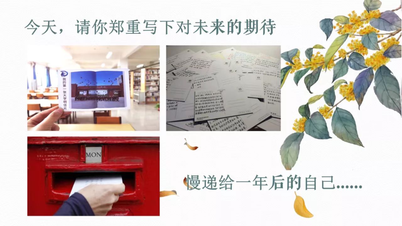入馆教育结束后,每一位新同学都领到了大学的第一张明信片。大家认真地在上面写下了自己对未来的期冀。