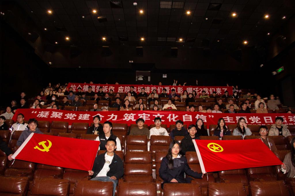 为深入学习贯彻习近平新时代中国特色社会主义思想,全面贯彻党的二十大和二十届二中、三中全会精神,深化党建引领作用,公司党委于2025年3月13日组织开展了“凝聚党建合力,筑牢文化自信”主题党日活动。公司党委书记张丕万、经理徐斌、党委副书记高德峰、副经理华平、中层干部、师生党员代表及团委骨干共计160余人共同观看国产动画电影《哪吒之魔童闹海》。公司党委组织部贾福辉部长一行3人也受邀出席。