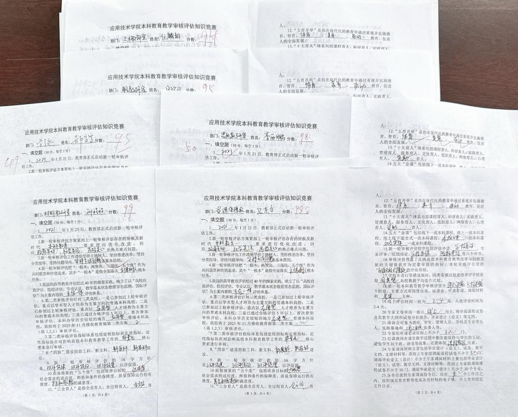 培训会后,为巩固学习成果,学院组织参会教师开展了评估知识竞赛。竞赛内容涵盖审核评估的基本理念、指标体系及学校办学特色等,进一步加深教师对审核评估政策的理解,增强迎评工作的责任感和使命感。