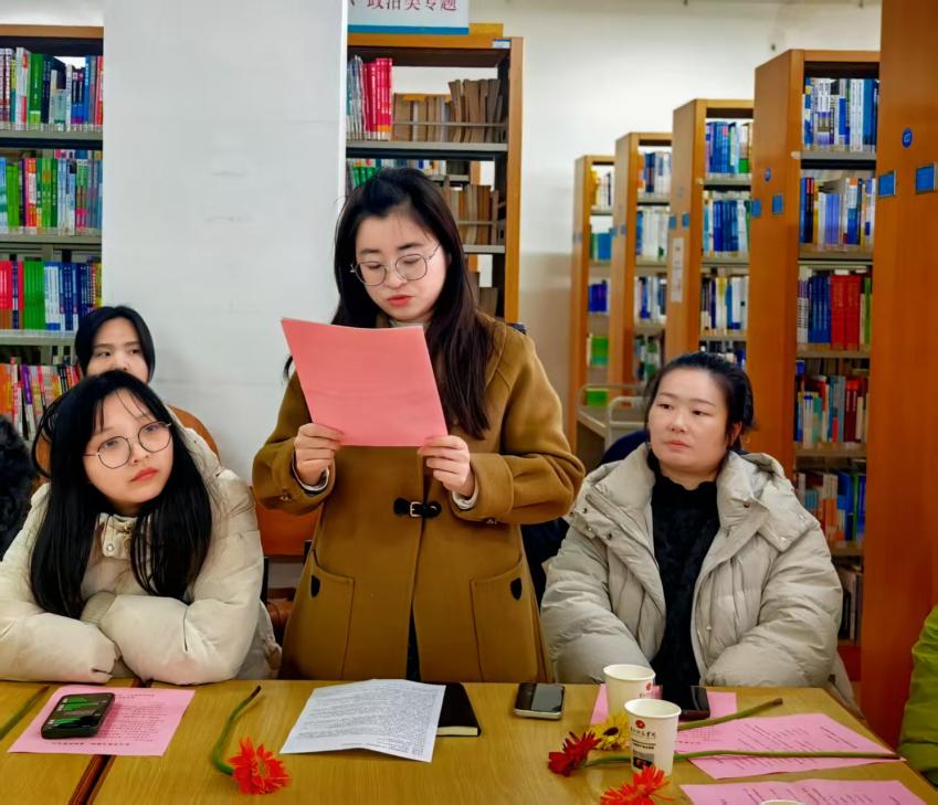 活动现场,学院女工委主任、教务处处长孔艳丽处长贴心地为每一位老师准备了节日花束和温馨寄语,图书馆也精心挑选了节日书单,为分享会增添了浓厚的书香气息与节日氛围。